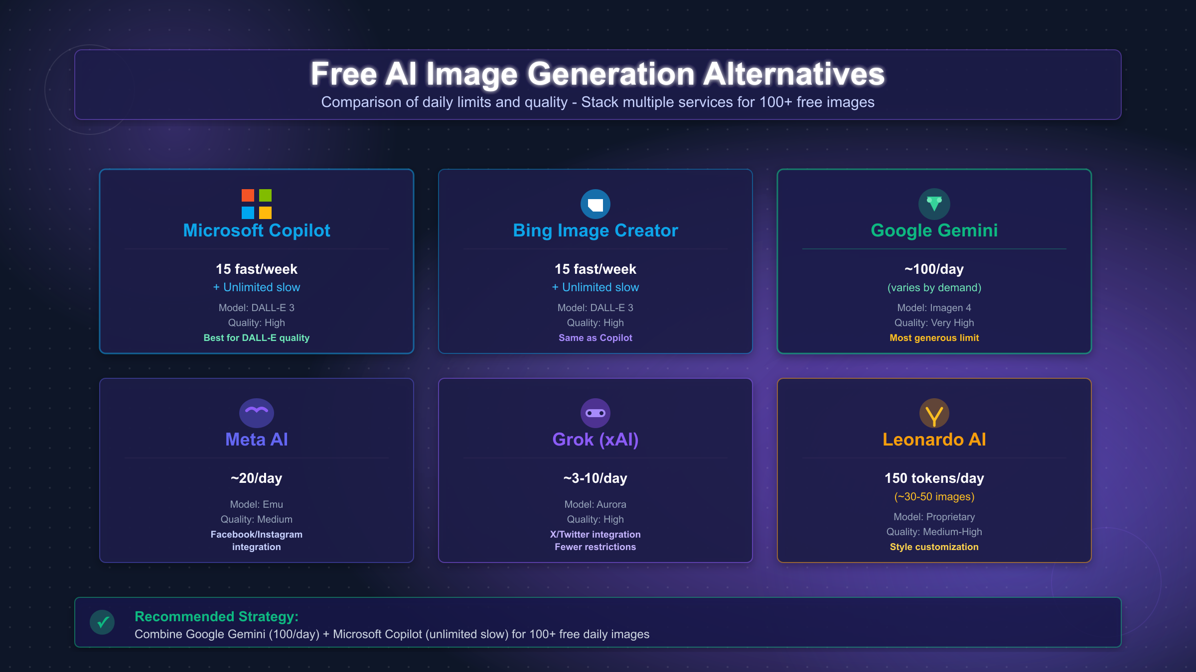 When ChatGPT's 2-3 daily images aren't enough, several legitimate alternatives offer free image generation with different limits and capabilities. Combining multiple services strategically can give you 50-150+ free AI-generated images daily without violating any terms of service. Each platform has distinct strengths and limitations, so the best approach involves matching the right tool to your specific use case rather than relying on any single service.