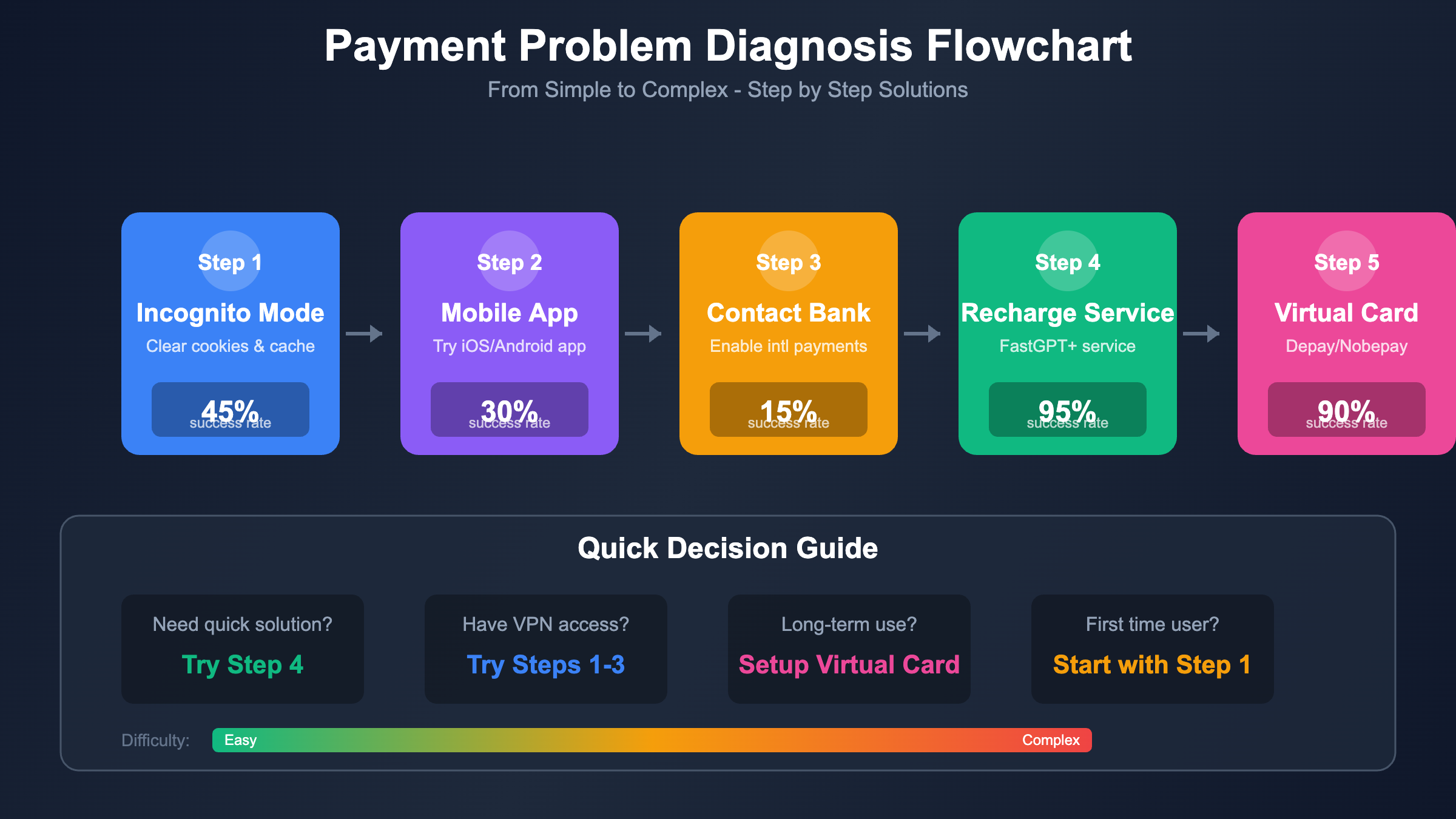 关键数据:根据FastGPTPlus的统计,89%的用户通过无痕模式在2分钟内成功完成支付。如果你是第一次遇到这个错误,强烈建议先尝试这个方法。
