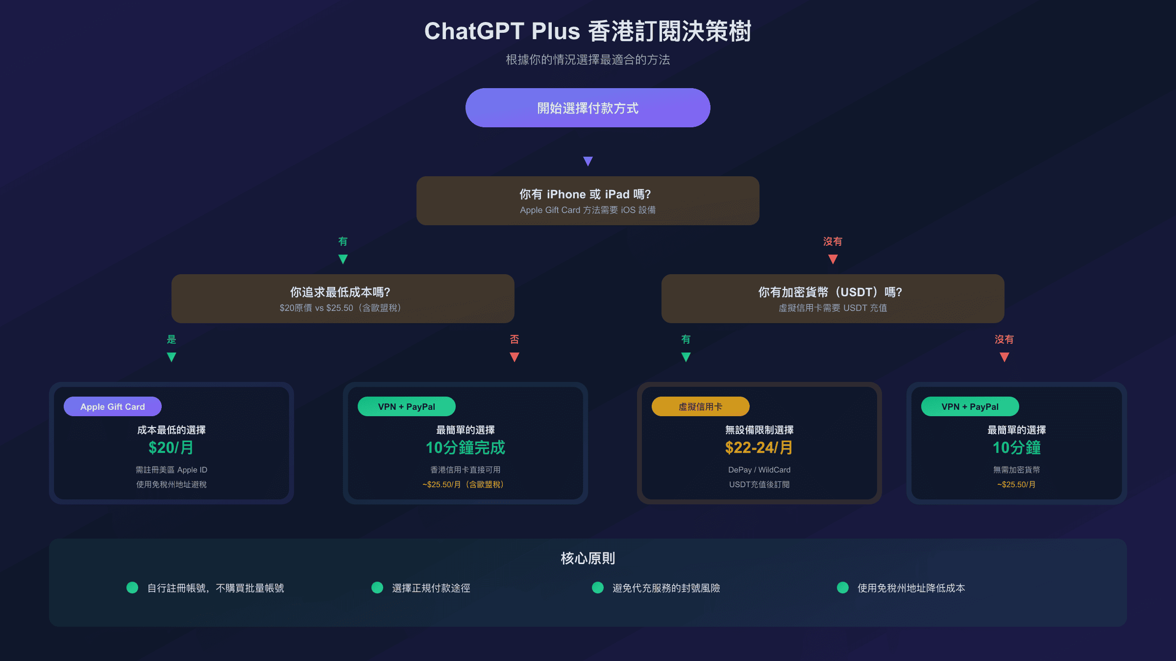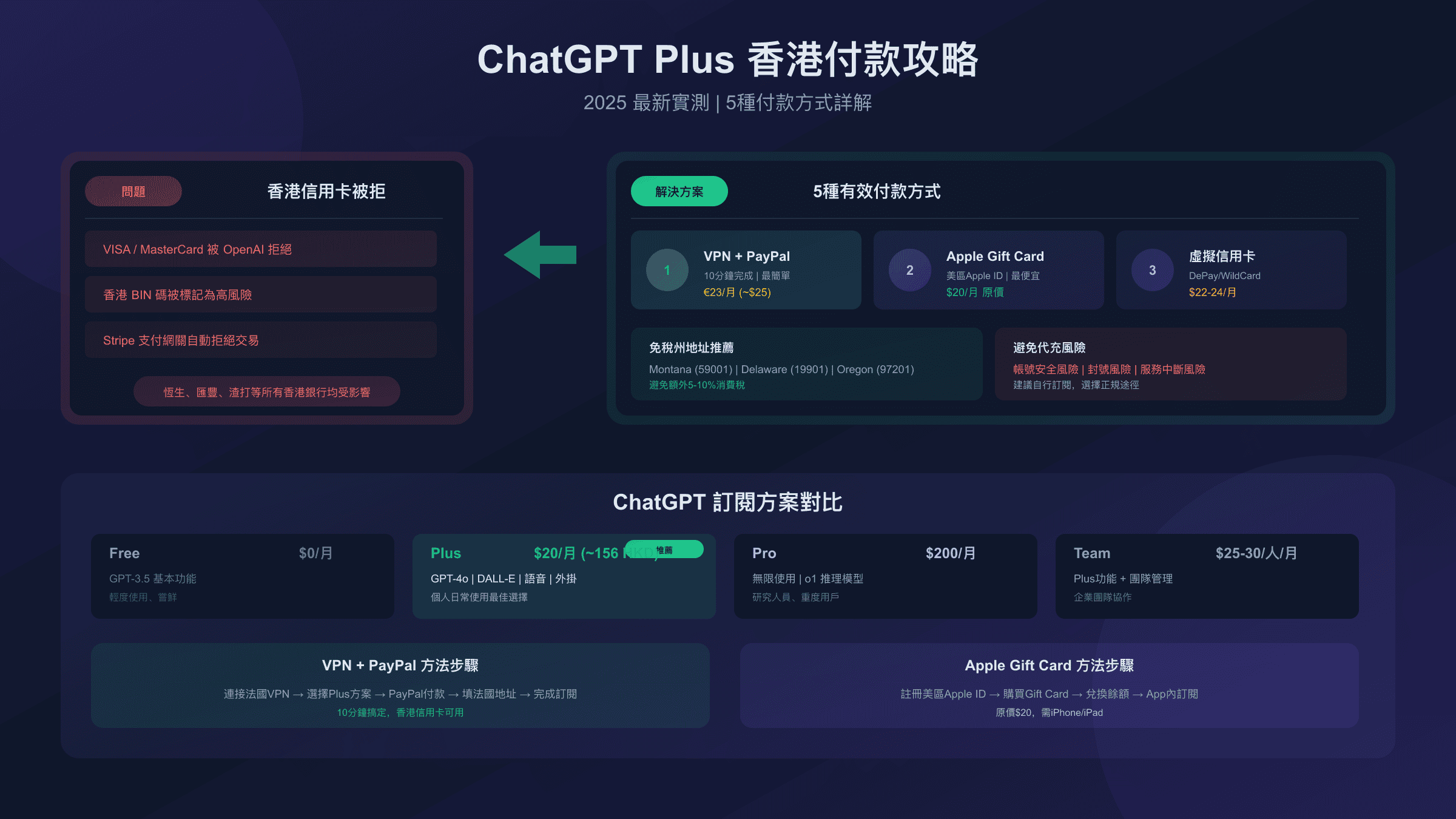 ChatGPT Plus 香港付款完全攻略 2025:5種方法實測比較【附免稅州地址】