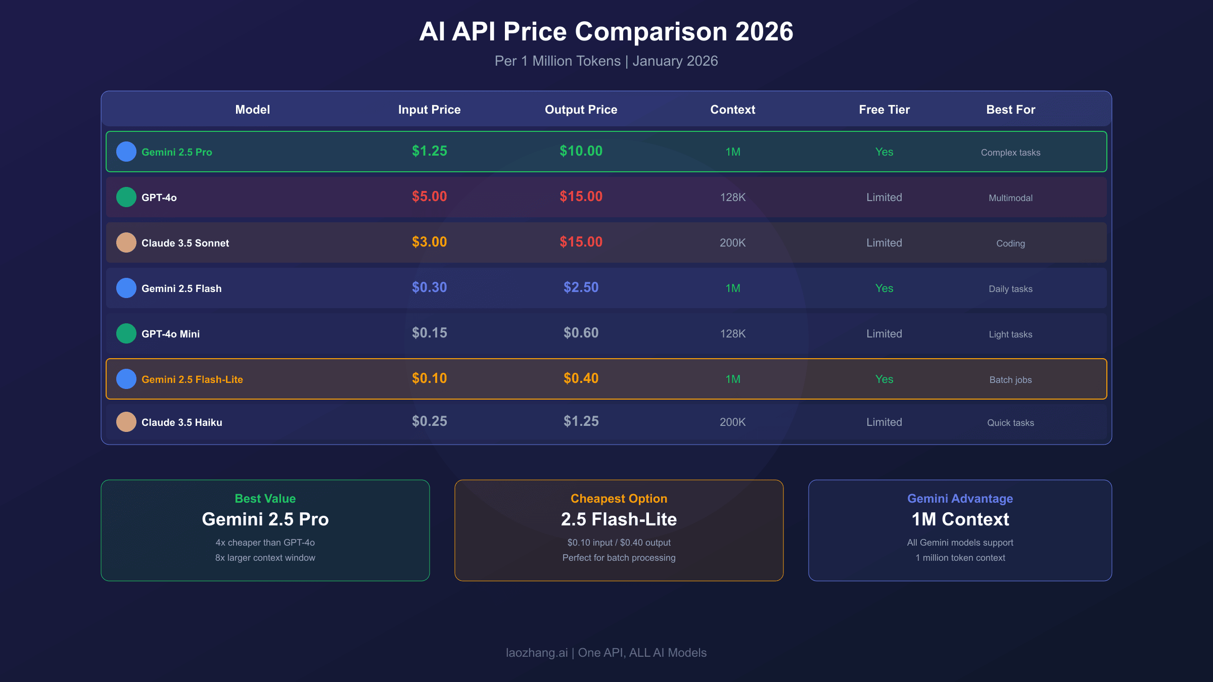 | 批量处理 | Gemini 2.5 Flash-Lite | $0.10 | $0.40 | 数据分类、内容提取 |