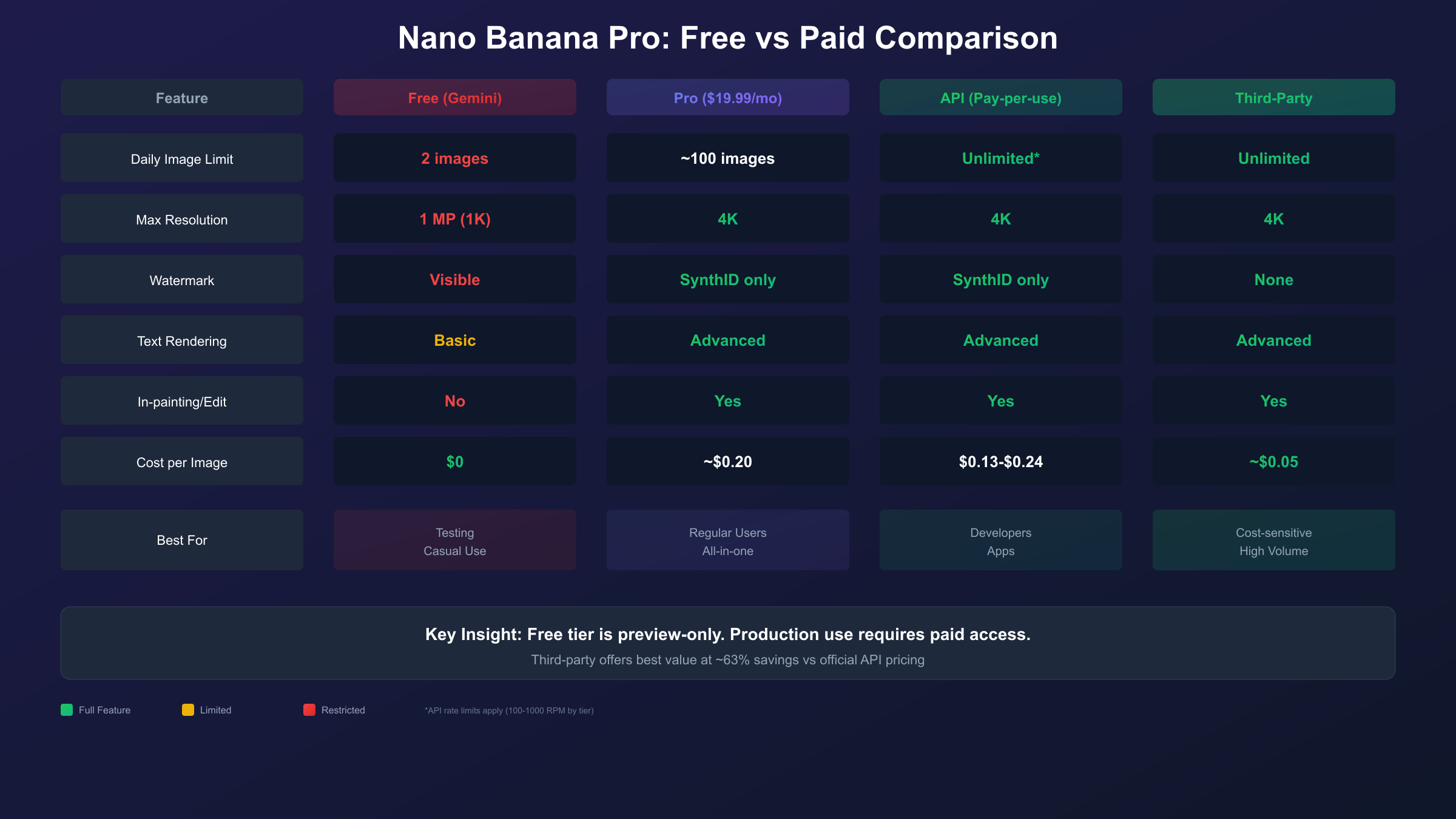 For a detailed analysis of pricing tiers and features, see the Nano Banana Pro free vs paid comparison.