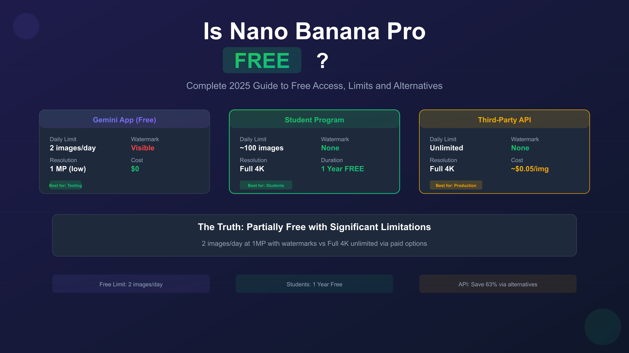 Discover the truth about Nano Banana Pro free access. Learn about Gemini app limits, student programs, API options, and cost-effective alternatives for Google's premium AI image generator.