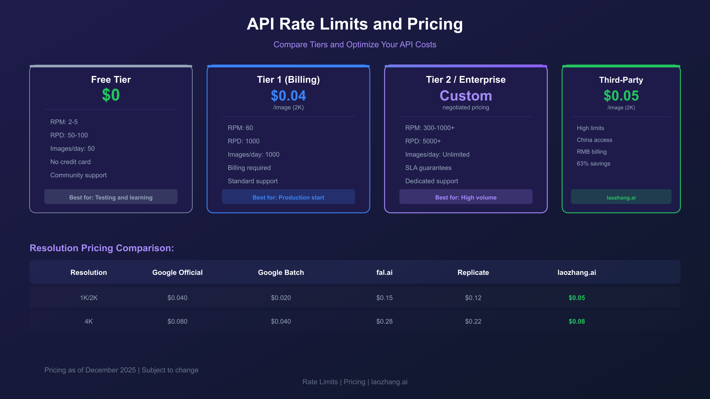 | Google Official | $0.040 | $0.080 | Base rate, ~$0.134 effective |