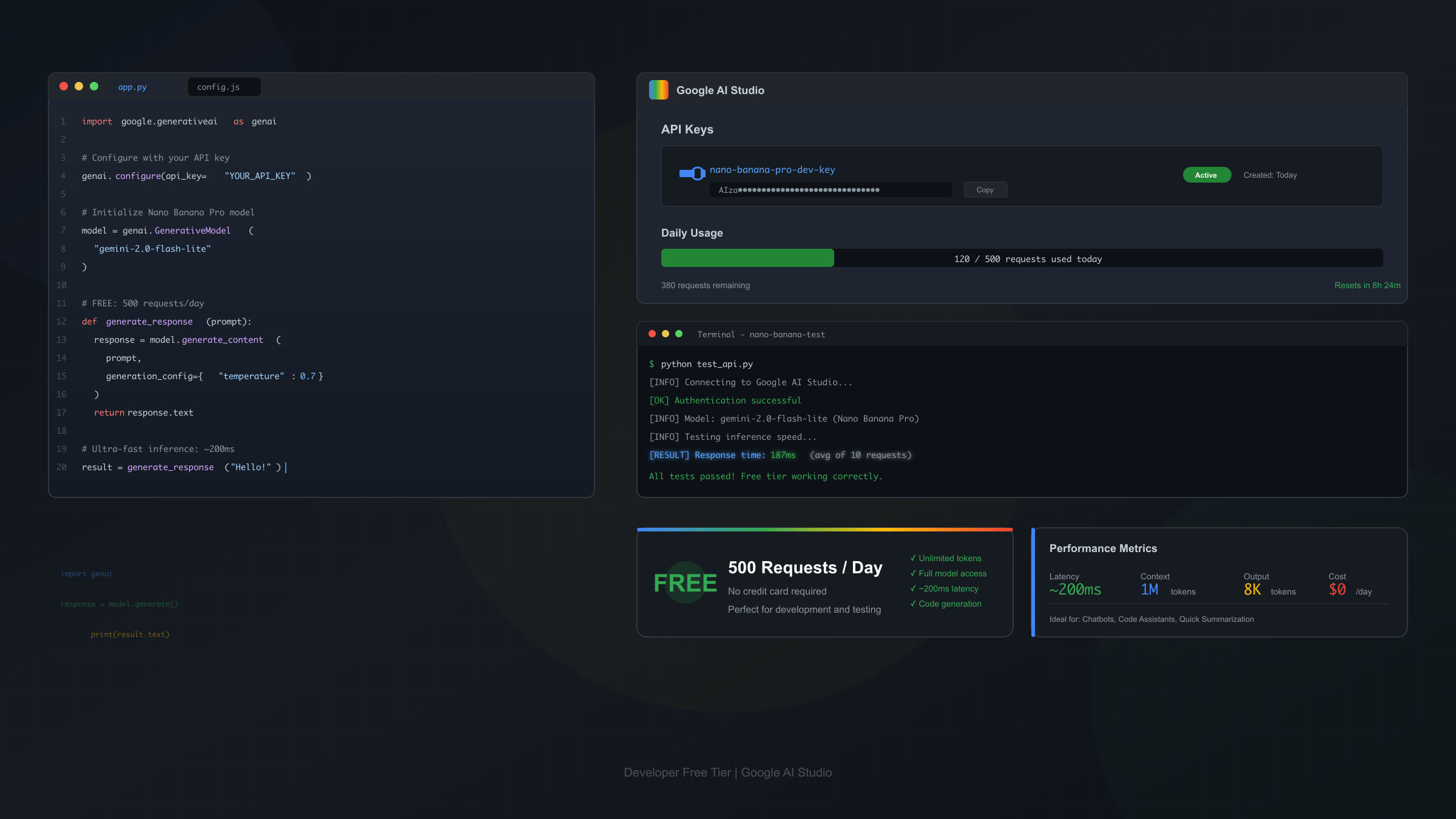 Master Nano Banana Pro free tier - 2 images/day at 1MP, reset at midnight PT. Get 500 free API requests via Google AI Studio. Detailed comparison, code examples, and cost-saving strategies.