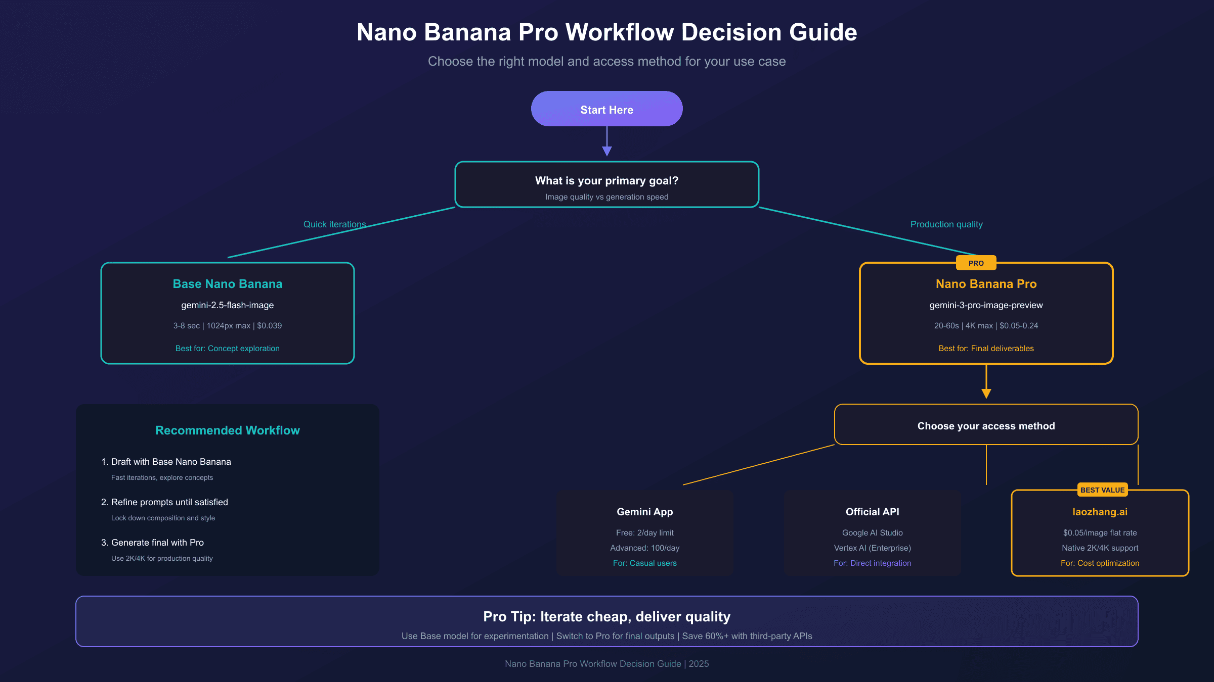 For most users, the recommended approach involves starting with the base Nano Banana model for rapid experimentation, then switching to Nano Banana Pro for final production outputs. This workflow balances cost efficiency during iteration with quality assurance for deliverables. Developers integrating at scale should evaluate both official Google pricing and third-party alternatives to optimize for their specific volume and budget requirements.