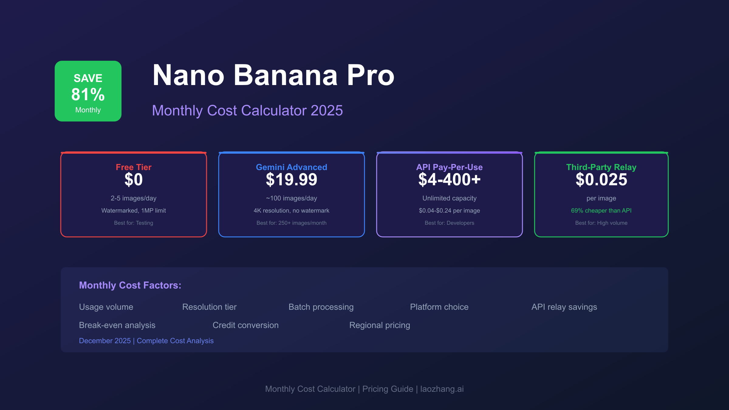Nano Banana Pro Monthly Cost: Complete Pricing Calculator 2025 [Save 81%]