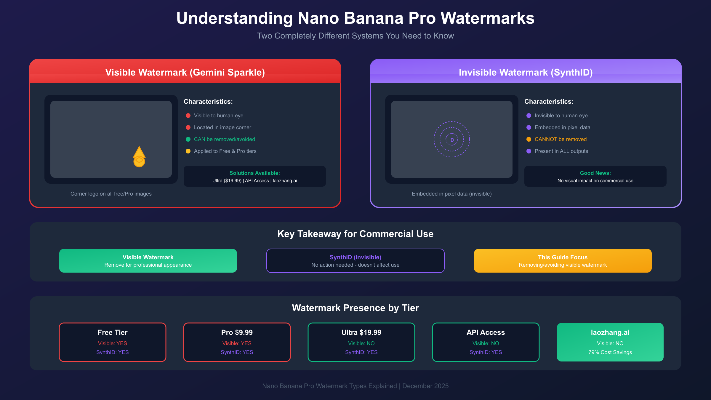 When users search for ways to remove watermarks from Nano Banana Pro images, they typically encounter confusion because Google actually implements two entirely separate watermarking systems. Understanding this distinction is essential before choosing any removal or avoidance strategy.