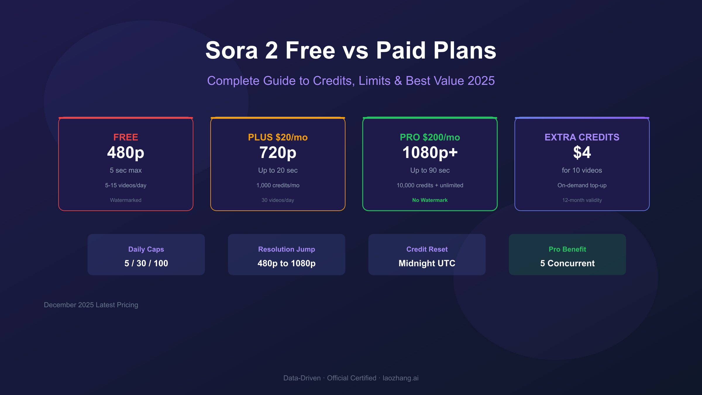Sora 2 Free vs Paid Plans: Complete Guide to Credits, Limits & Best Value (2025)