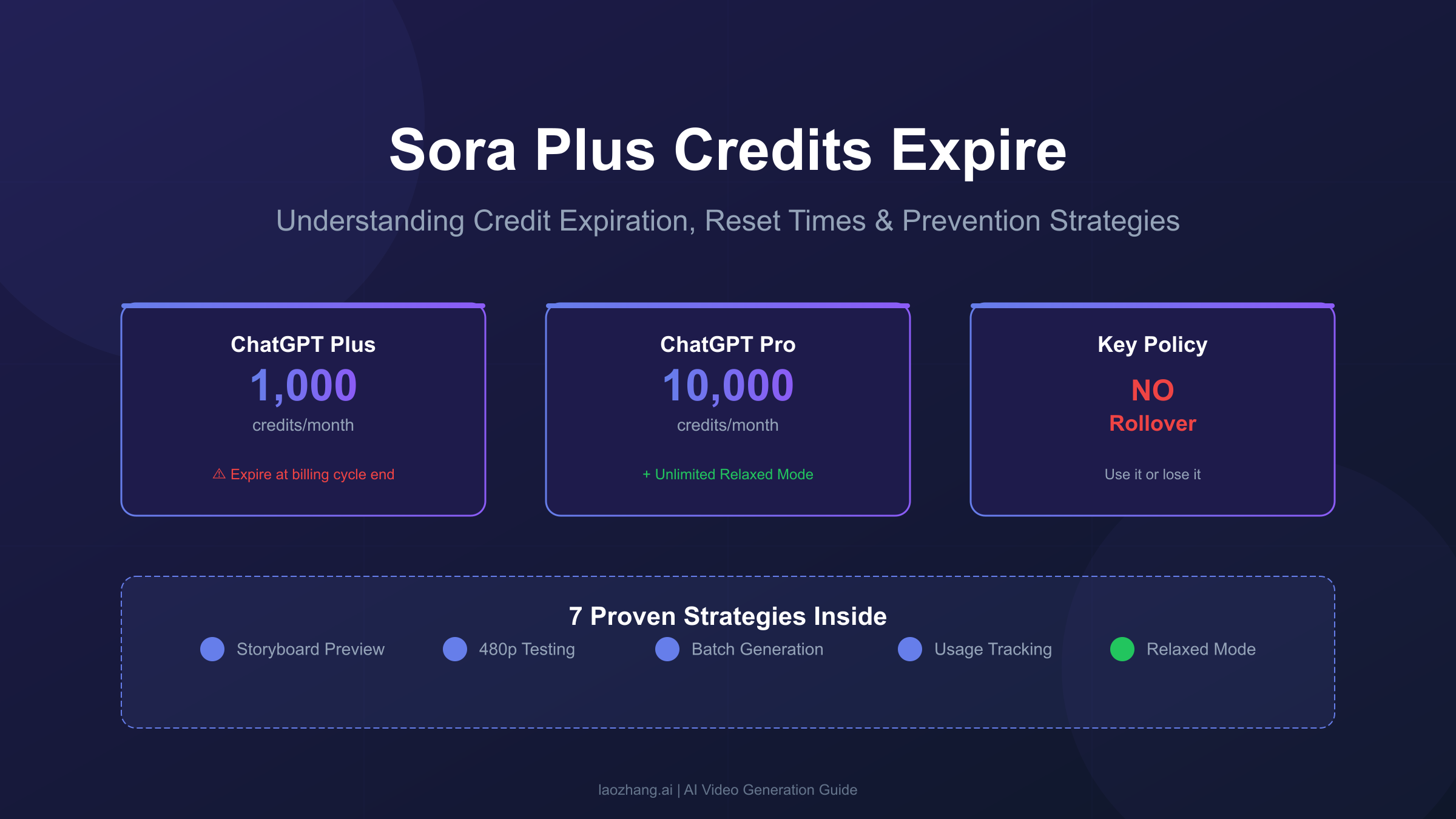 Do Sora Plus credits expire? Yes - unused credits are forfeited at billing cycle end. Learn exactly when credits reset, how to check your balance, and 7 proven strategies to maximize your 1,000 monthly credits before they expire.